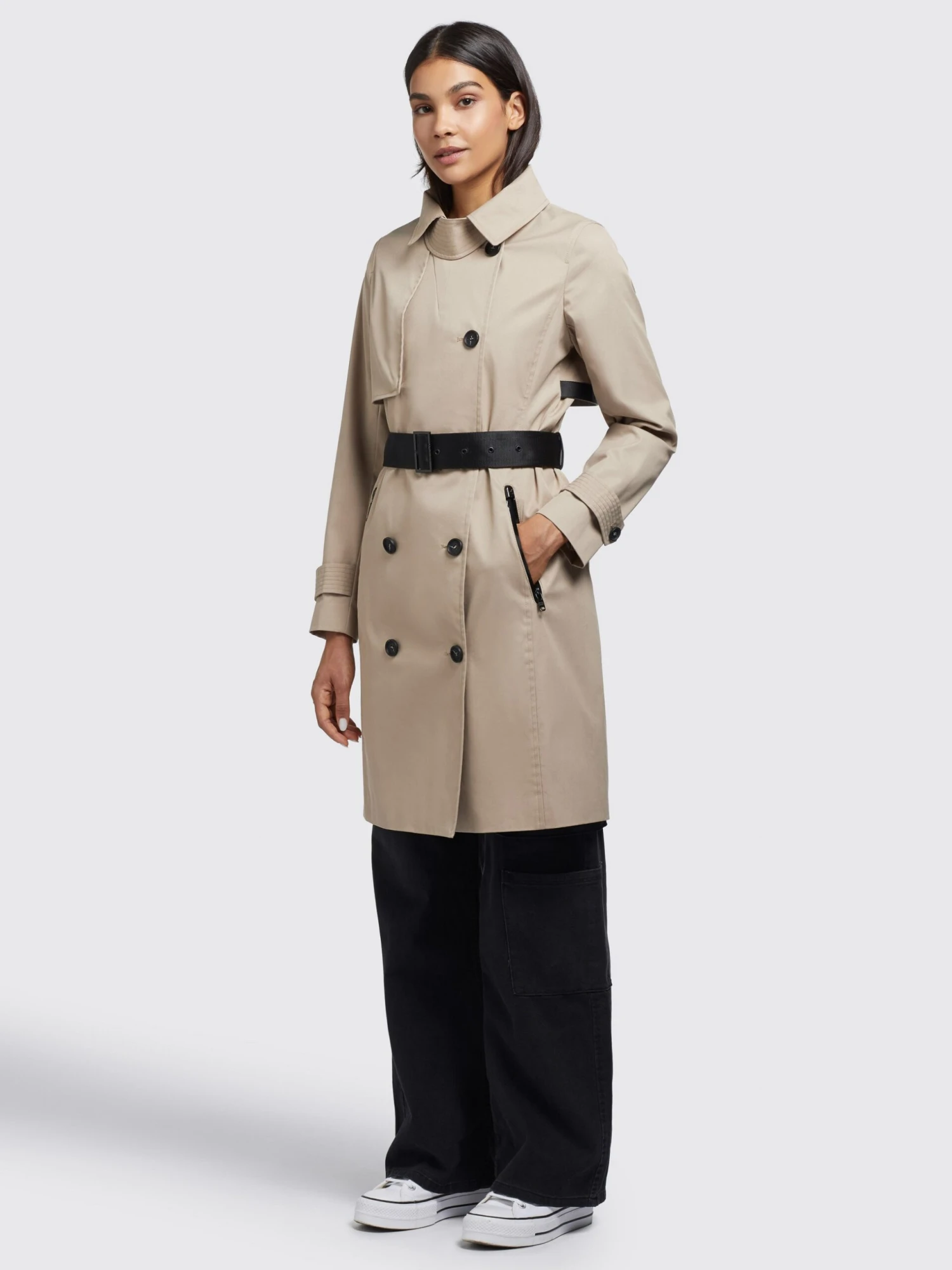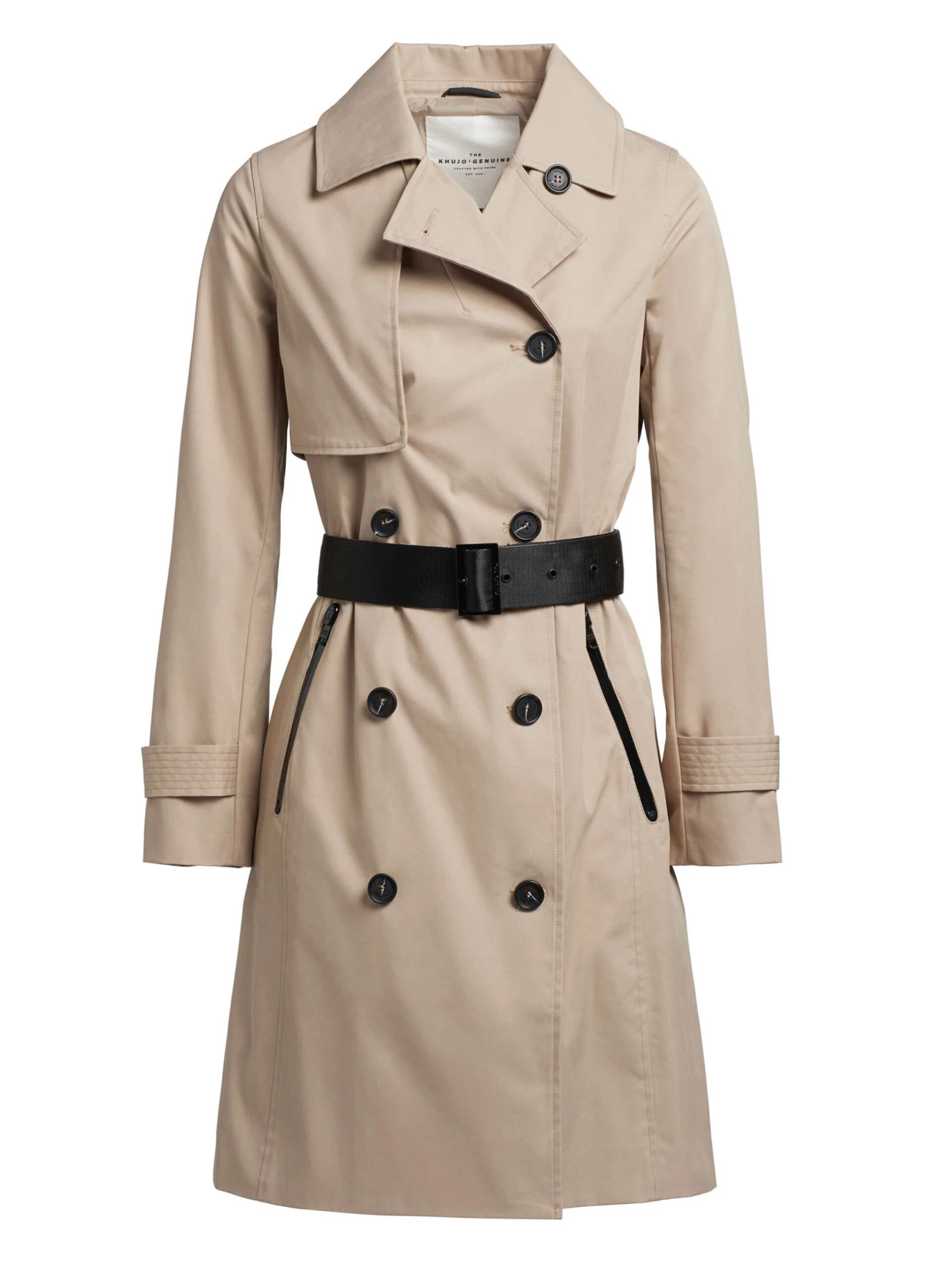 Eine abnehmbare Windschutzblende am Reverskragen und eine überlappend schließende Vorderseite mit Knopfleiste geben dem khujo Mantel SARINA einen uerwechselbaren Look. Eine Logo-Bordüre am Öffnungsschlitz der Rückenpasse, wasserabweisende Reißverschlüsse an den Eingrifftaschen und ein abnehmbarer Gürtel setzen bei diesem klassischen Trenchcoat modische Akzente. Ein leichtes Innenfutter und ein Gehschlitz komplettieren den Kurzmantel.