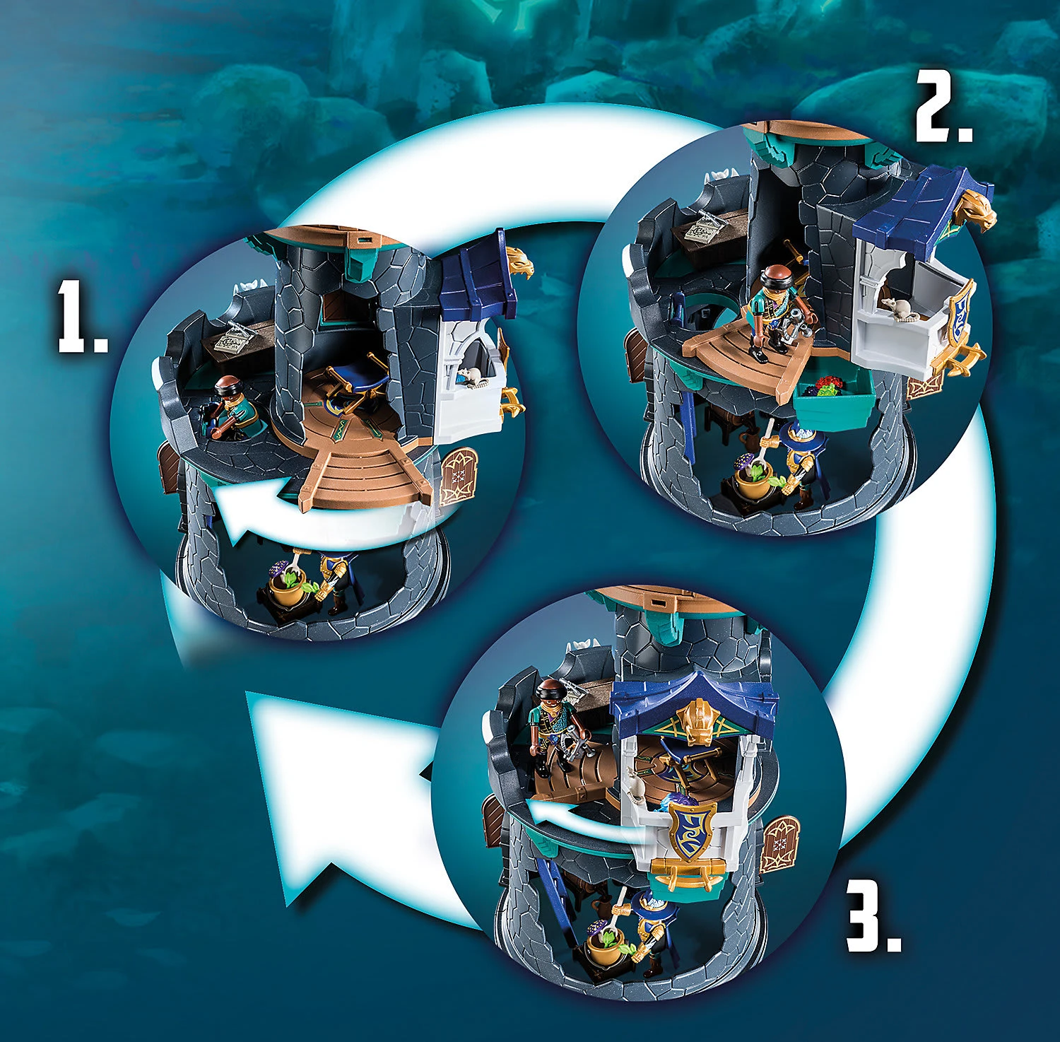 Tauche ein in die fantastische Welt des mächtigen Zauberers Timithor – des Wächters der Zeit! Violet Vale – Zaubererturm (70745) von playmobil mit magischen Drehmechanismen, Geheimverstecken und mächtigen Abwehrmechanismen ab 4 Jahren geeignet 135 Teile Im sagenumwobenen Zauberturm von Violet Vale befindet sich die Zauberwerkstatt von Timithors Freund und Wegbegleiter Sagithor. Hier werden Zaubersprüche geübt und magische Tränke gebraut. Der mystische Turm birgt viele Geheimnisse, sogar ein wertvoller Schatz liegt hier verborgen. Die funkelnden Kristalle zu erbeuten ist jedoch fast unmöglich, denn das Tor im Erdgeschoss wird durch ein Zauberschloss verriegelt, das nur von echten Magiern geöffnet werden kann. Vom Turm aus hält Zaubermeisterin Crysthella durch das Fernglas Ausschau nach Gefahren. Sollten sich Dämonen oder dunkle Zauberer dem Turm nähern, werden sie mit Geschossen aus der Kanone begrüßt. Das Spielset enthält die Novelmore-Zauberer Sagithor und Jutsithor und Zauberin Crysthella, einen Zaubererturm mit Drehmechanismus und Geheimversteck sowie schussfähiger Kanone, Zauberkessel, Zauberbuch, Kristalle und viele weitere fantastische Extras für magische Spielstunden.