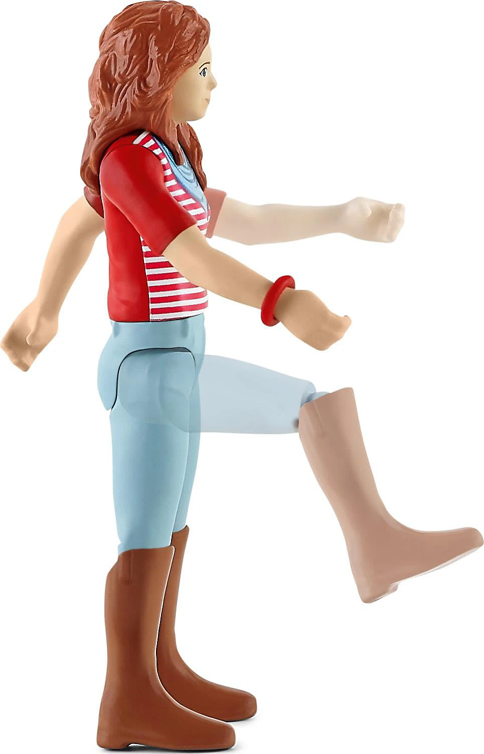 Der Horse Club Lakeside Pferdehof von Schleich® Horse Club beherbergt Hannah und ihre Eltern und bietet vielfältige Spielfunktionen und Accessoires. In der Küche des Wohnhauses wird am Esstisch vom Apfelkuchen aus dem Backofen genascht oder ein Snack aus dem Kühlschrank stibitzt. Teller, Tassen, Topf und Pfanne werden am Spülschrank abgewaschen. Die Mädchenfigur Hannah ist genau wie ihre Eltern Caroline und Oliver Kramer vollbeweglich und kann sitzen, reiten und stehen. Zusammen kümmern sie sich um Quarter-Horse Cayenne und Hannoveraner-Hengst Jupiter. Sie werden mit Striegel und Kardätsche geputzt und bekommen für das Training den Sattel aufgelegt.